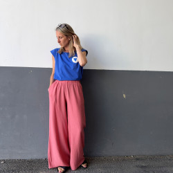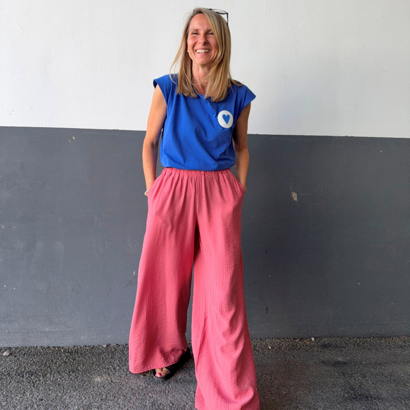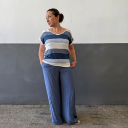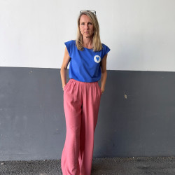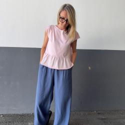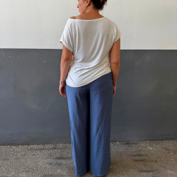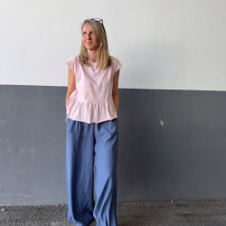 Materiál: ultra ľahká viskóza s pokrčeným vzorom. Pozor! Praním sa viac pokrčí a tak môžu nohavice pôsobiť užšie. Na pôvodný rozmer ich treba ožehliť.