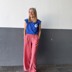 Spojili sme strih našich ikonických širokých teplákov s vnútornými vreckami s našimi novými jednofarebnými viskózovými látkami a vznikli tieto mega pohodlné letné nohavice.