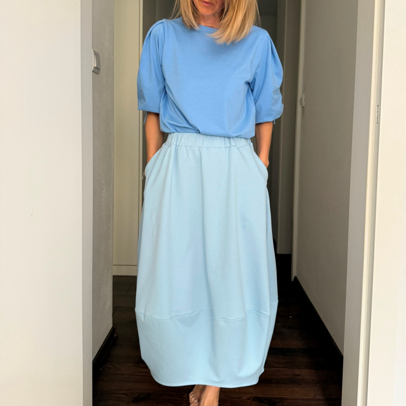Pohodlie v každom kroku. BaloonSkirt je midi sukňa z jemnej teplákoviny s elastickým pásom a praktickými vreckami. Vďaka minimalistickému dizajnu a decentným detailom ju môžeš nosiť ležérne aj elegantne – vždy tak, aby si sa cítila skvele. Perfektný match s BaloonTee, ktorý ponúkame ako zvýhodnený set so zľavovým kódom #baloonset (zadáš v košíku)